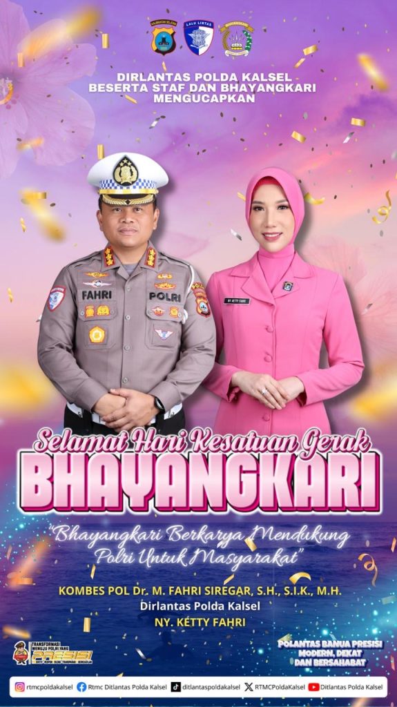 Dirlantas polda kalsel beserta staf dan Bhayangkari mengucapkan selamat hari kesatuan gerak bhyangkari βBhayangkari berkarya mendukung Polri untuk masyarakatβ