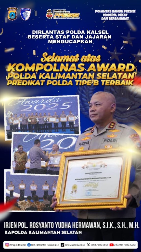 Dirlantas Polda Kalsel beserta Staf dan jajaran mengucapkan selamat atas KOMPOLNAS AWARD Polda Kalimantan Selatan predikat polda Tipe B Terbaik